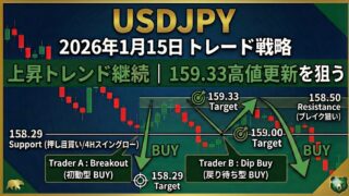 【USDJPY】2026年1月15日のトレード戦略 | 上昇トレンド継続で159.33高値更新を狙う