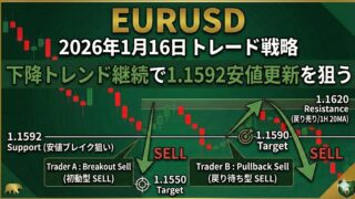 【EURUSD】2026年1月16日のトレード戦略 | 下降トレンド継続で1.1592安値更新を狙う