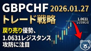 【GBPCHF】2026年01月27日のトレード戦略 | 戻り売り優勢、1.0631レジスタンス攻防に注目