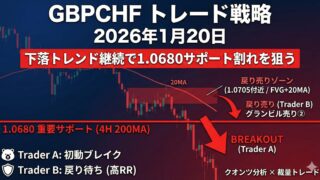 【GBPCHF】2026年1月20日のトレード戦略 | 下落トレンド継続で1.0680サポート割れを狙う