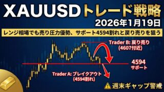 GOLD 【XAUUSD】2026年1月19日のトレード戦略 | レンジ相場でも売り圧力優勢、サポート4594割れと戻り売りを狙う