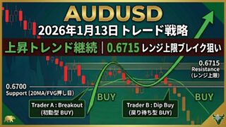 AUDUSD 【AUDUSD】2026年1月16日のトレード戦略 | 上昇トレンド継続で0.6702レジスタンス突破を狙う