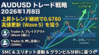 第1章: 概要(導入部)2026年01月19日(月)のAUDUSD(豪ドル/米ドル)について、裁量トレード×クオンツ分析の視点から戦略を立案しました。今日の市場は弱気(Bearish)バイアスが強く、特に0.6666のサポートライン攻防に注...