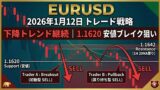 結論: 4時間足は明確な下降トレンド継続中ですが、1時間足では調整局面(Wave 4)にあります。この調整が終わるタイミングを捉え、主要トレンド(下降)への回帰を狙うトレンドフォロー戦略が有効です。