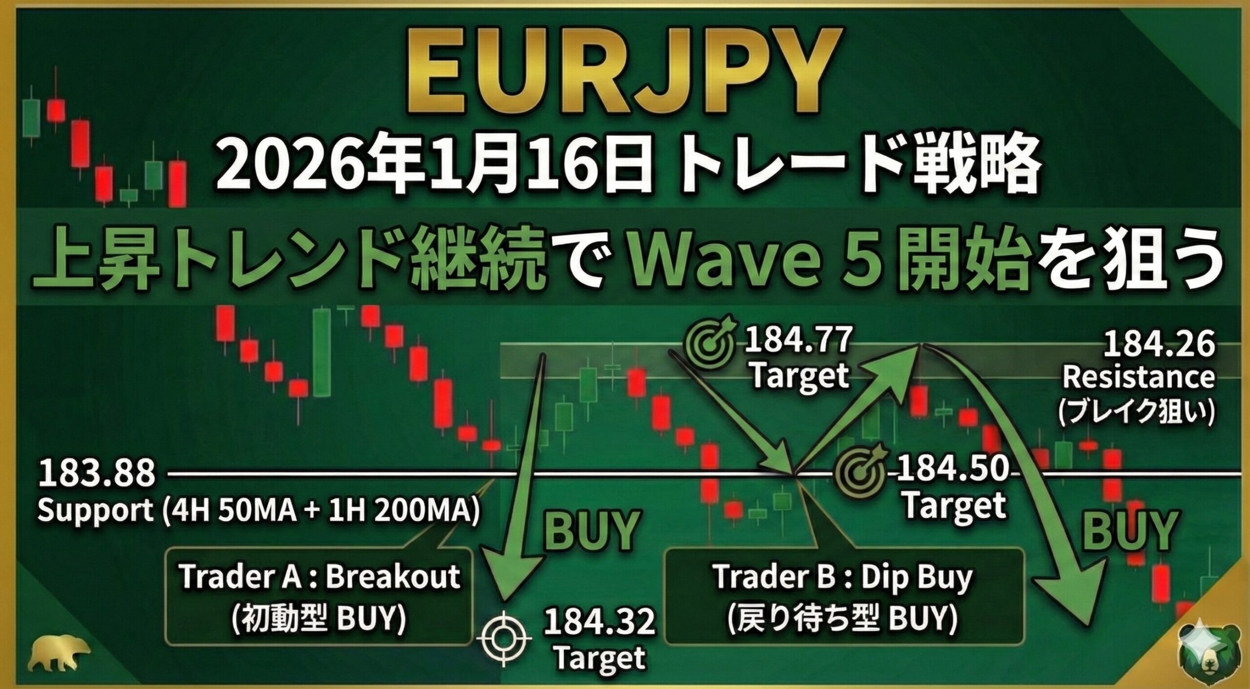 - テクニカル根拠: 184.26のレジスタンス突破により、エリオット波動Wave 5の開始を早期に捉える。
