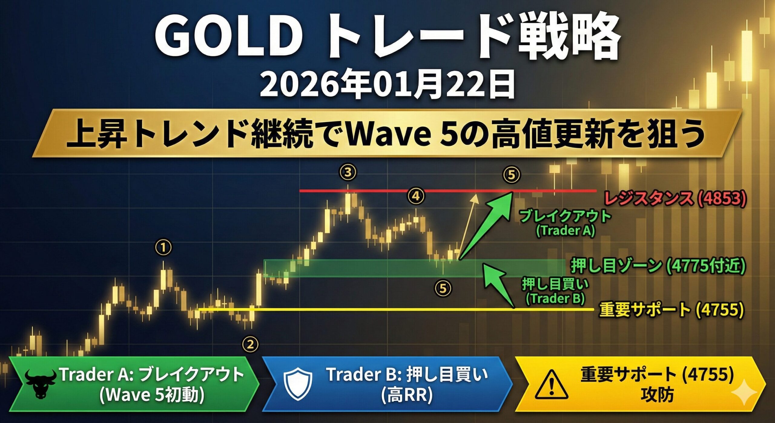 2026年01月22日(木)のGold(XAUUSD/ゴールド)について、裁量トレード×クオンツ分析の視点から戦略を立案しました。
