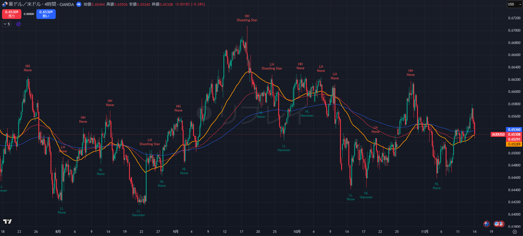 - 全体: 豪雇用統計の好結果にもかかわらず「全戻し」となった昨日の動きは不穏ですが、ダウ理論上の上昇トレンドはまだ崩れていません。0.6520を守れるかが今週の天王山です。
