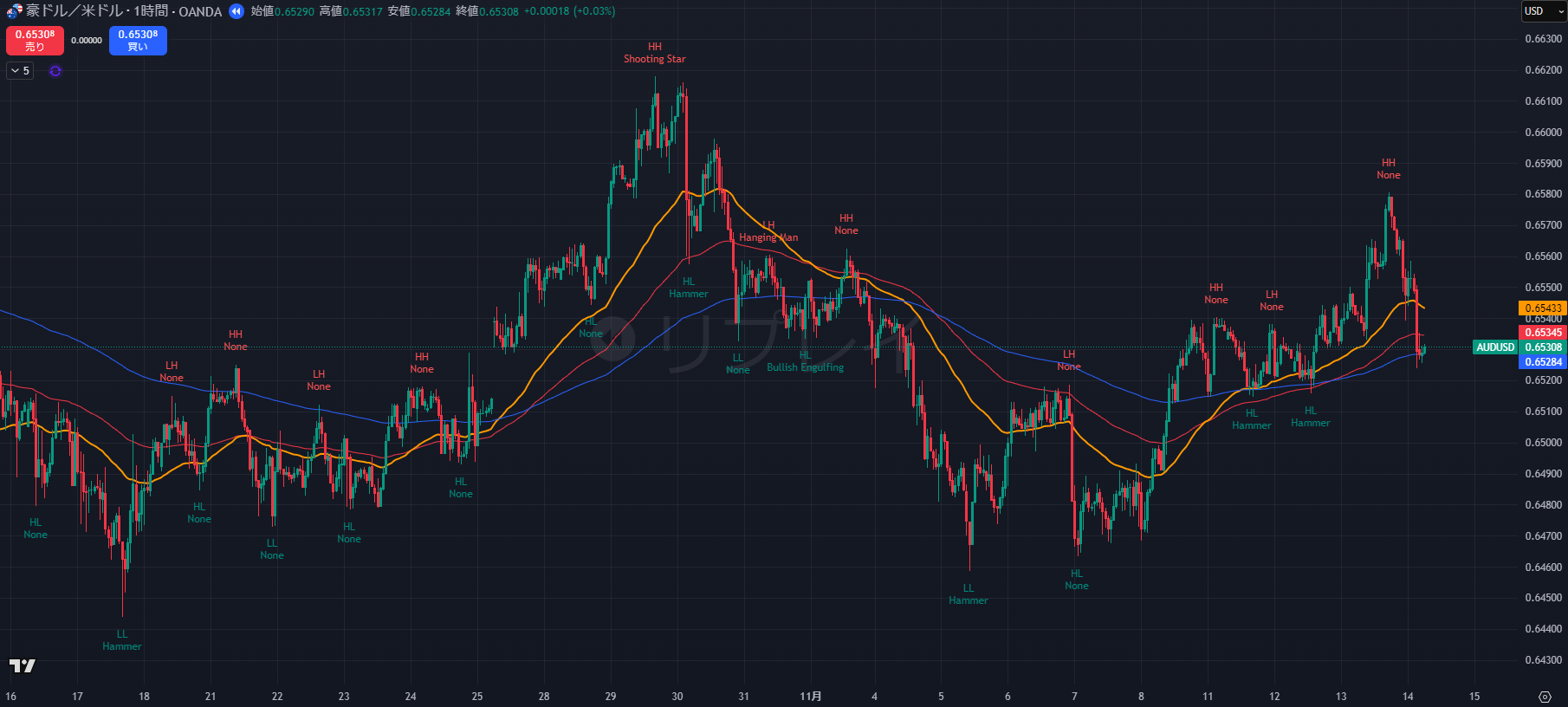 - 米小売売上高への警戒 (Volatility): 本日(11/14)は米国の「小売売上高(Retail Sales)」発表が控えています。昨日のNY時間からの急落は、このイベントを前にした利益確定売り(ポジション調整)の側面が強いと推測されます。