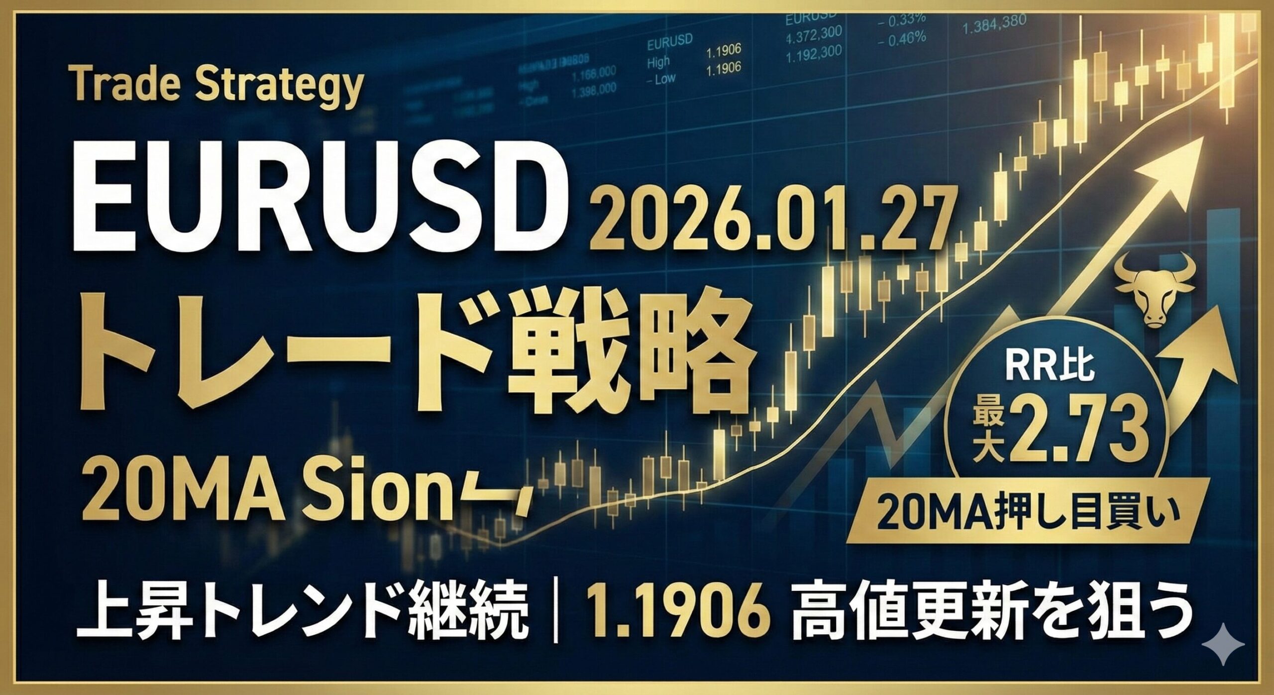 2026年01月27日のEURUSD分析。上昇トレンド継続中、20MA押し目買いに注目。Trader A/B戦略でRR比最大2.73を実現。テクニカル分析に基づく実践的戦略。
