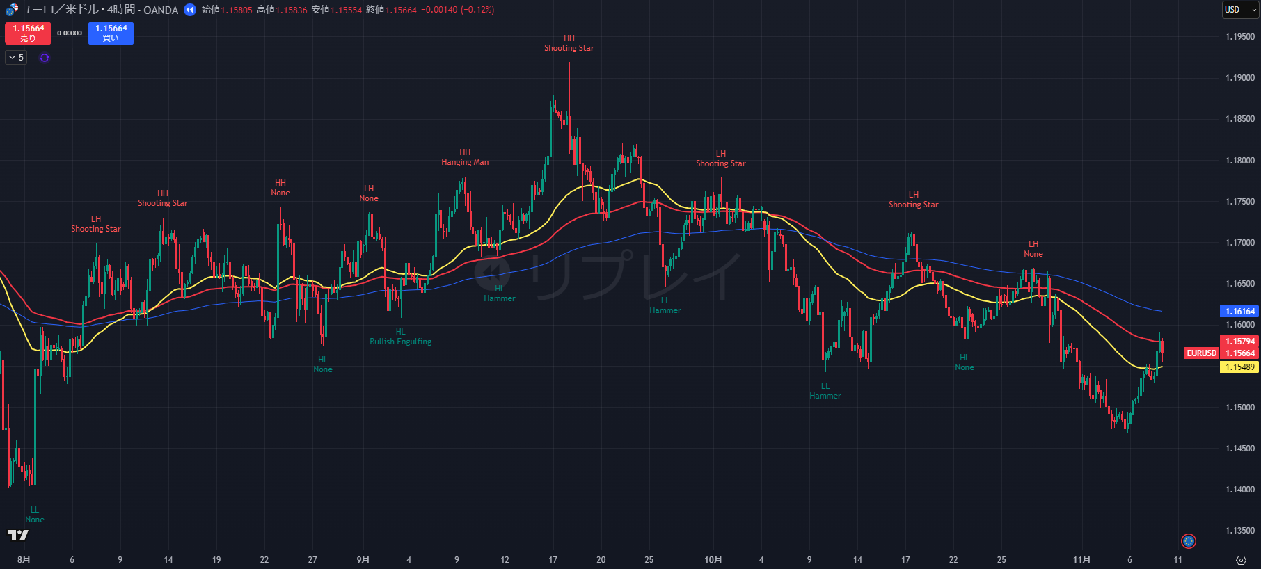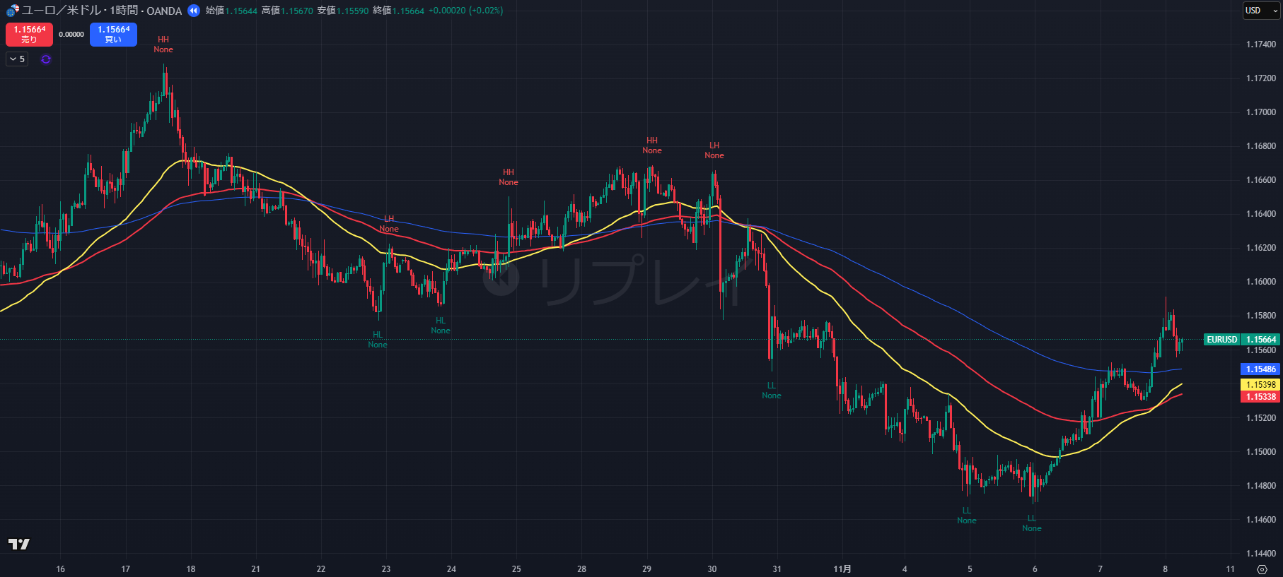 - 直近高値 (HH): 1.1583 (11/8 未明)