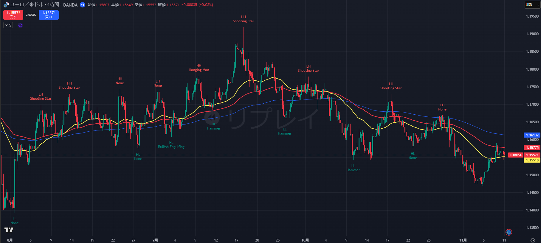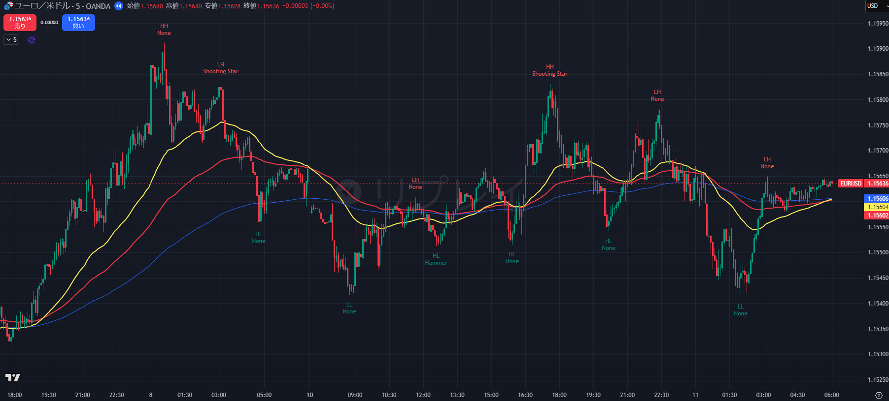 - 4時間足レベルでは、Higher High (HH): 1.16xx / Higher Low (HL): 1.1535 の形成が崩れていません。
