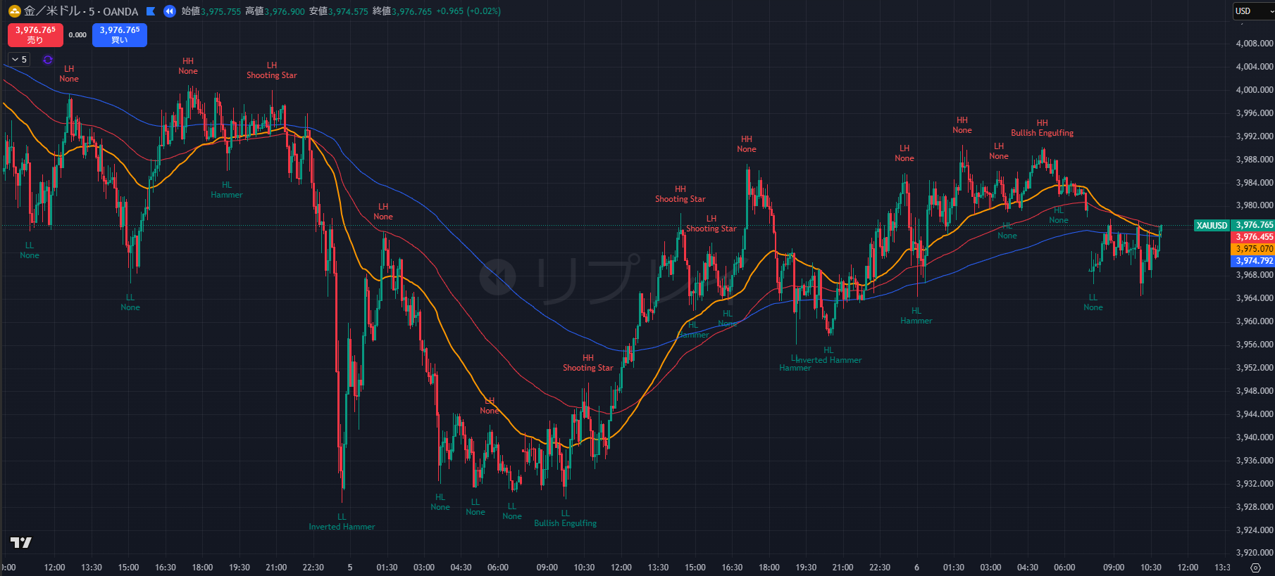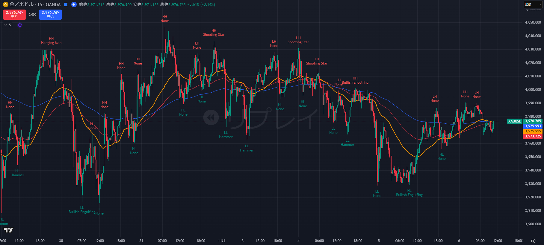 - 本日の要点: 昨日のV字上昇により、3930-3980のレンジが形成されました。現在はレンジ上限に張り付いており、ここでのプライスアクション(ブレイクか反転か)の見極めが最重要です。