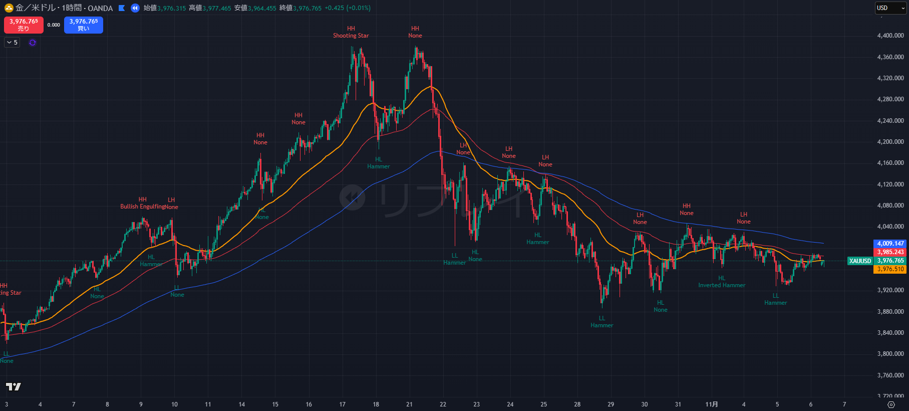 - 3930を底に、高値を3976まで更新しました。短期的には買い圧力が優勢です。