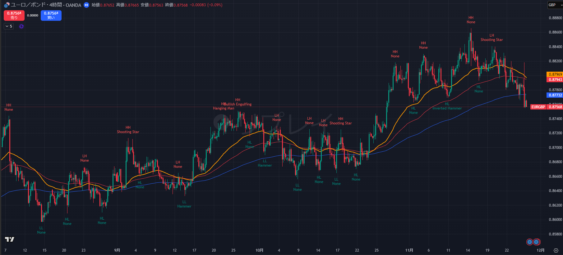 - 11/26 Low: 0.8758 (14:10) → TP手前まで下落