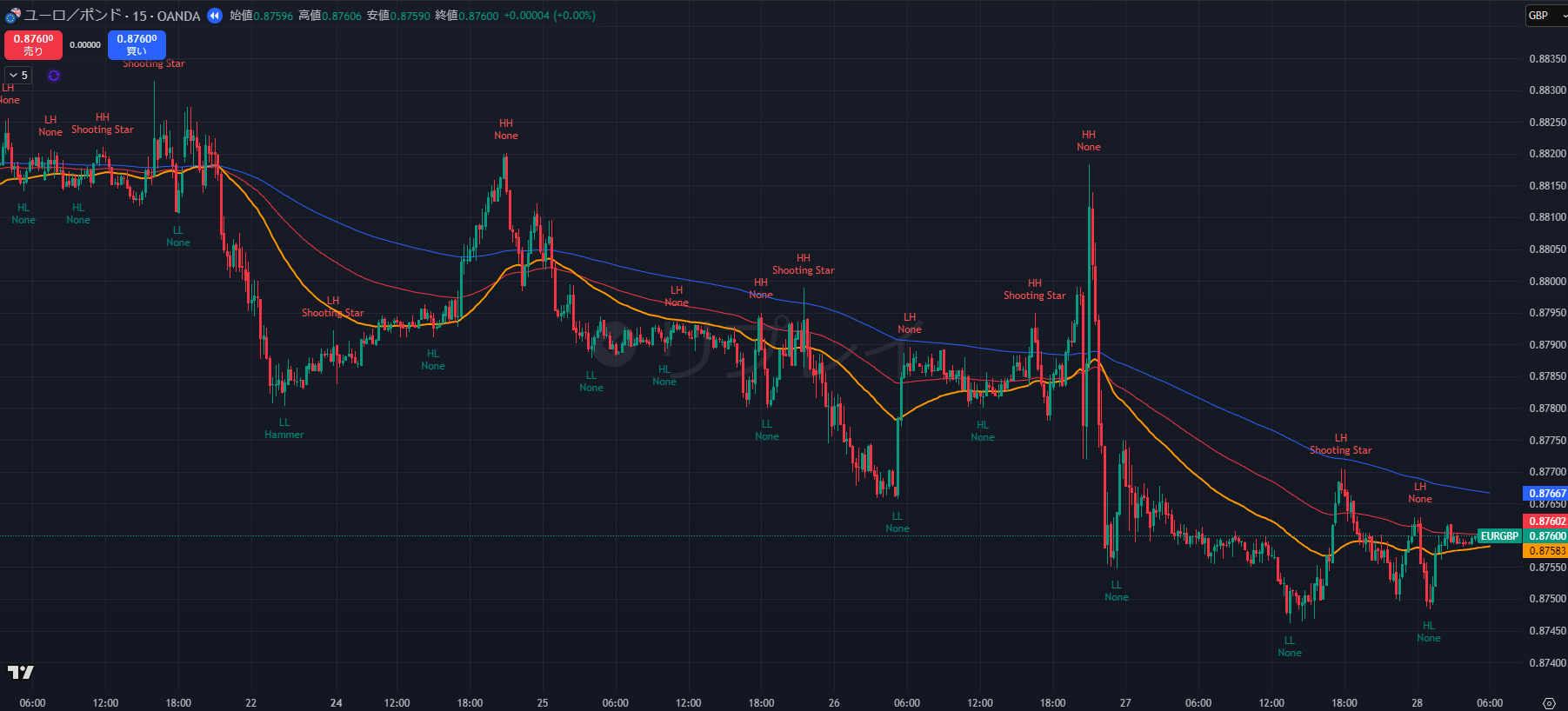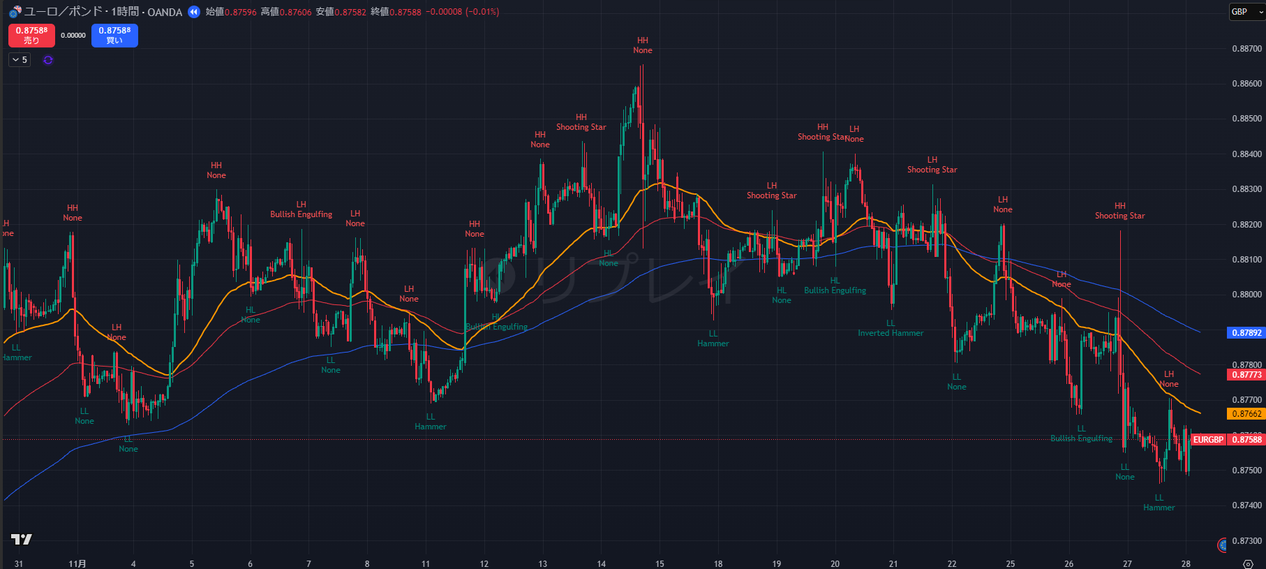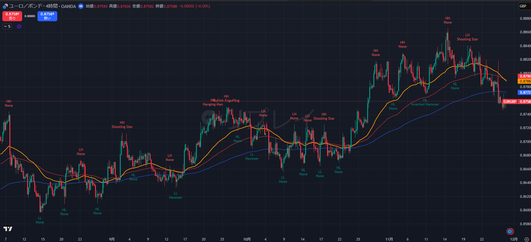 - 安値更新(LL): 0.8790 → 0.8759