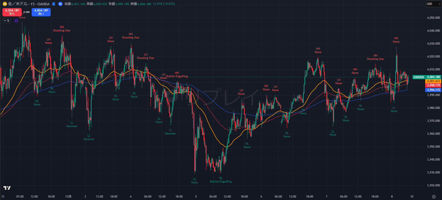 - 3985ドル割れ: ここを割れた場合、目線はフラットに戻し、3950ドル方向への下落を警戒してください(本日はショート推奨しません)。