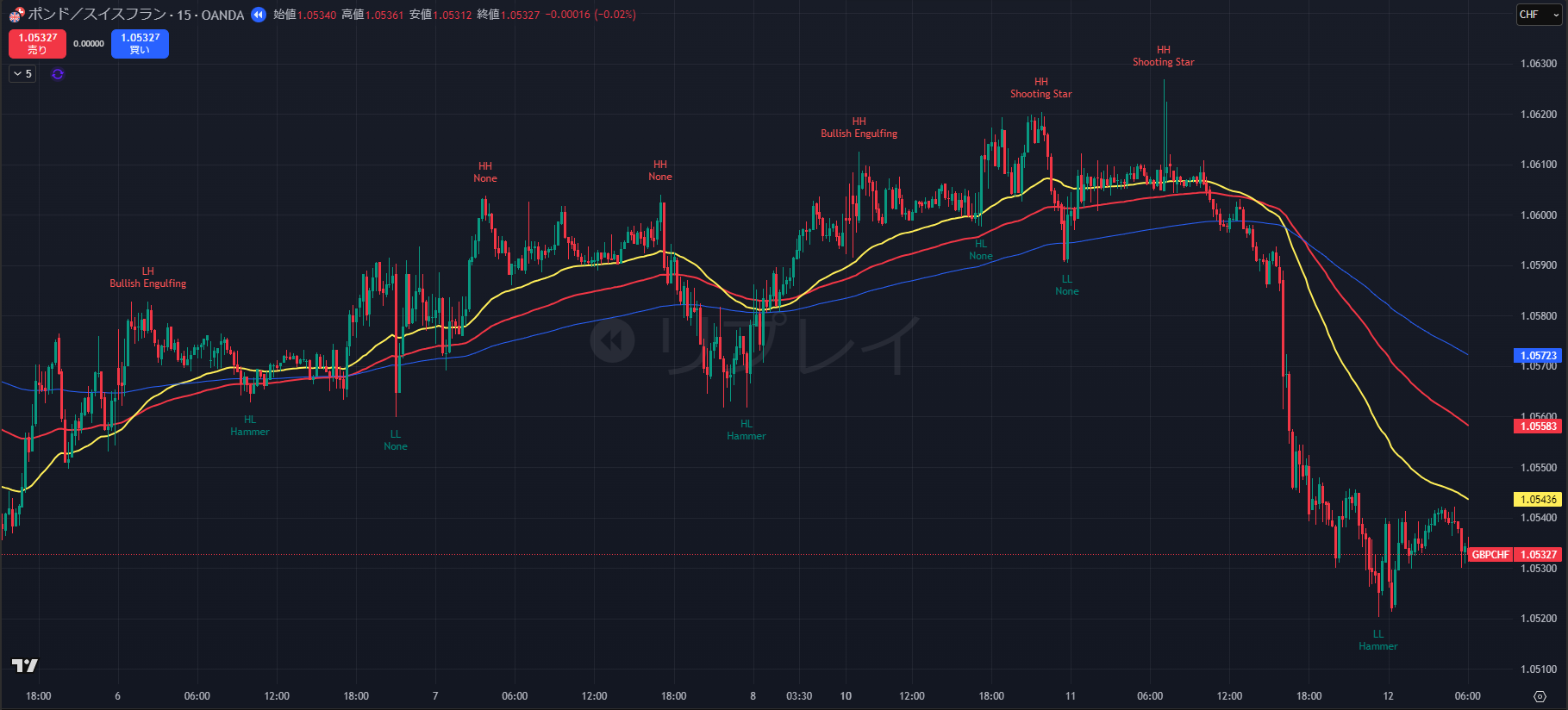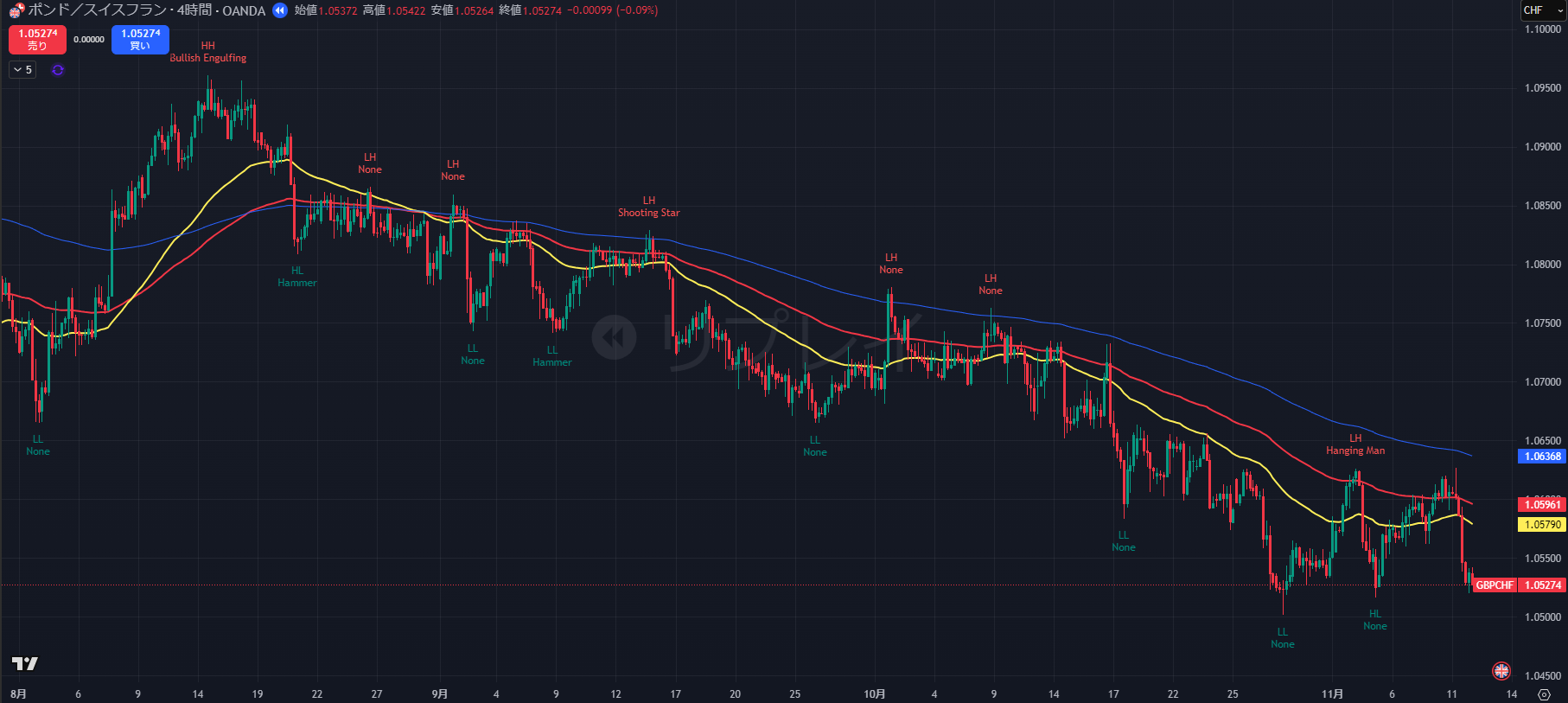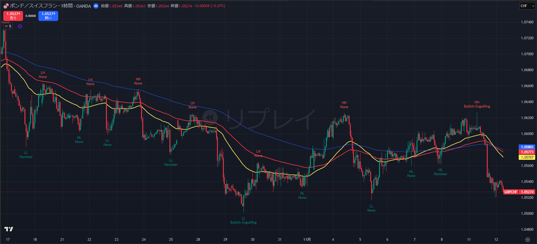 - リスクオフとGBPの弱含み: 特定の指標発表(未来の日付のため推定)がなくとも、ポンド主導ではなく、全般的なリスクオフ(株安など)による スイスフラン(CHF)への資金逃避 が発生した可能性が高い動きです。