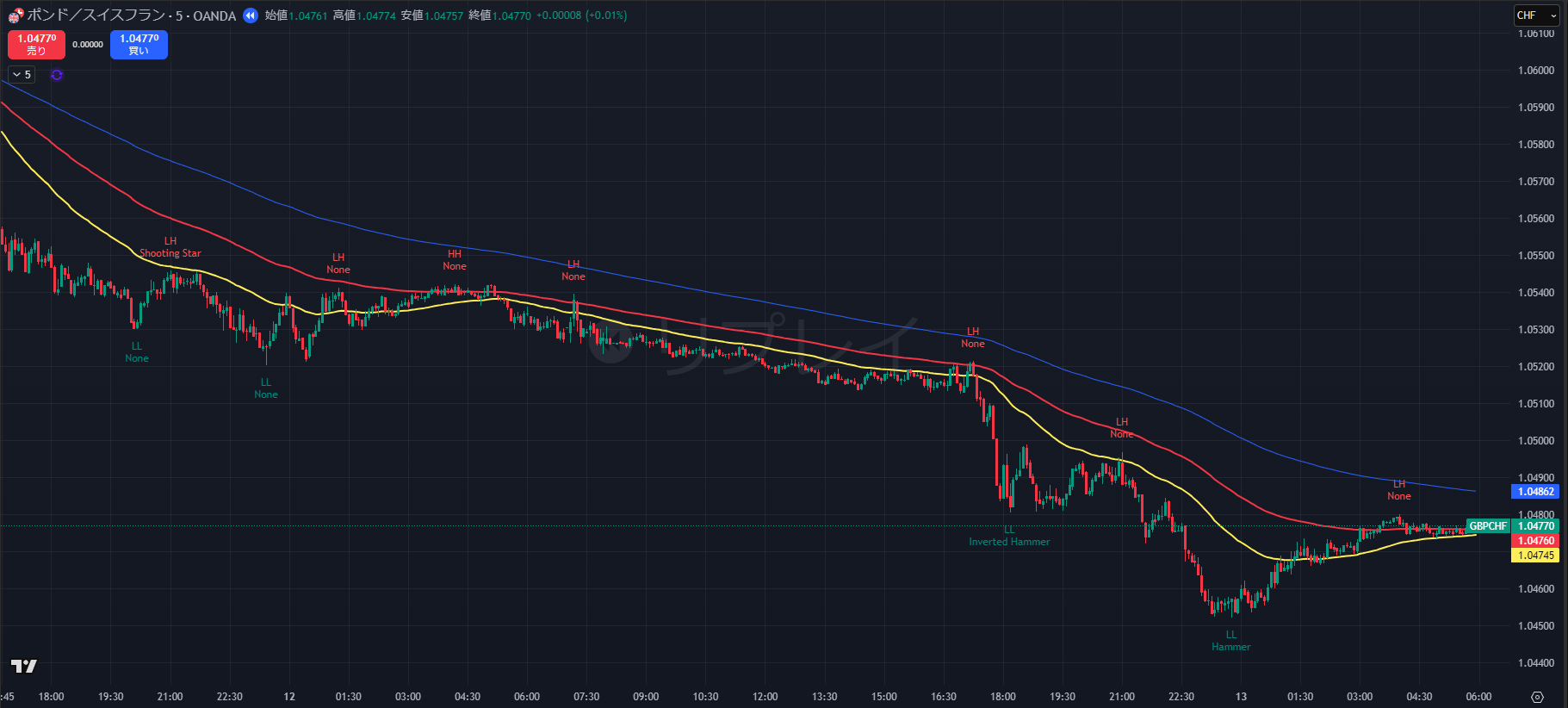 - 注意: そのまま1.0470をブレイクして下落していく場合は、無理に追わず「ノートレード」とする(リスクリワードが悪いため)。