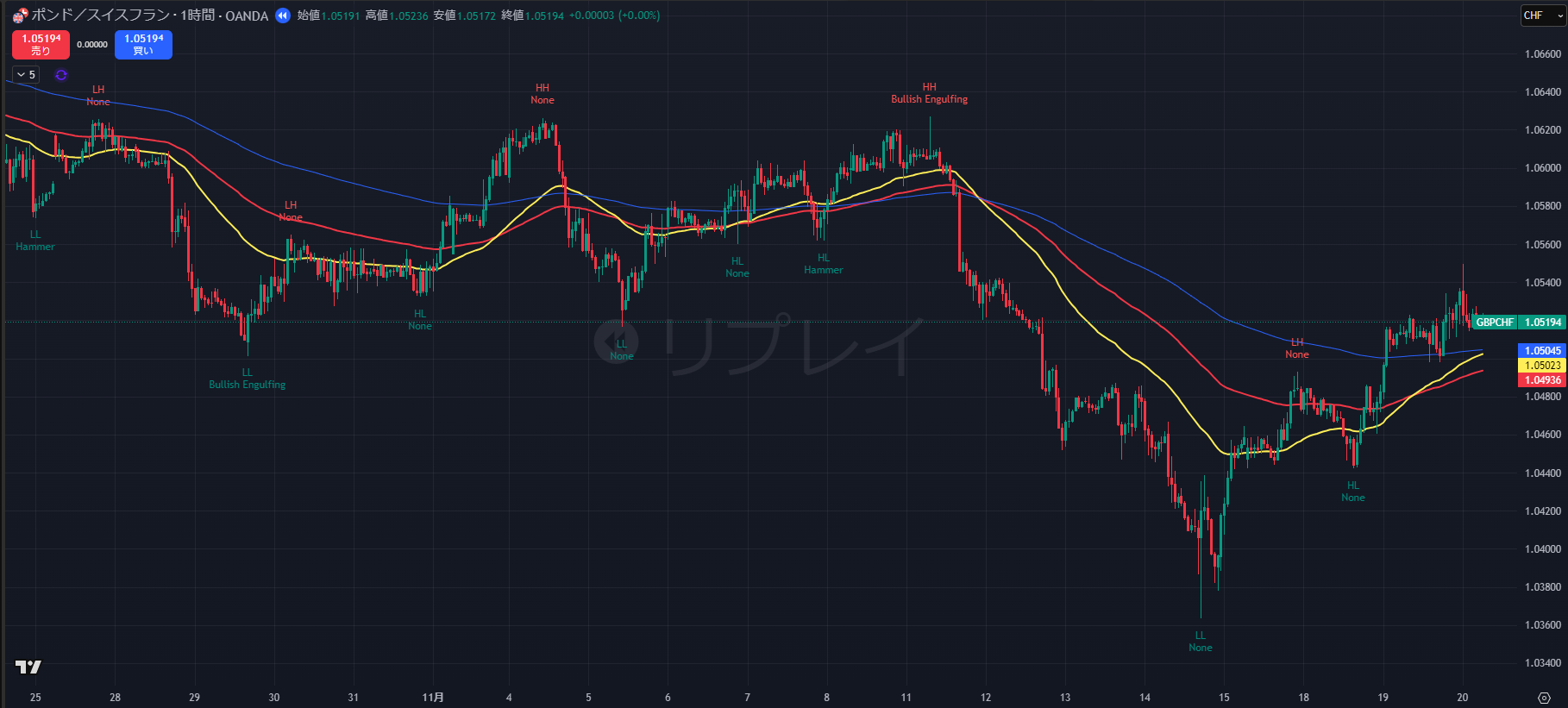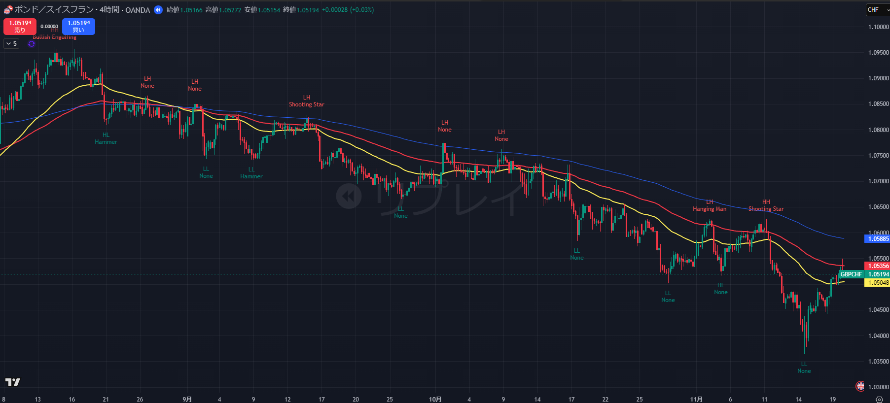 - ラスト押し安値(上昇転換の基準): 1.0448 (11/17 11:00のMajor SL)