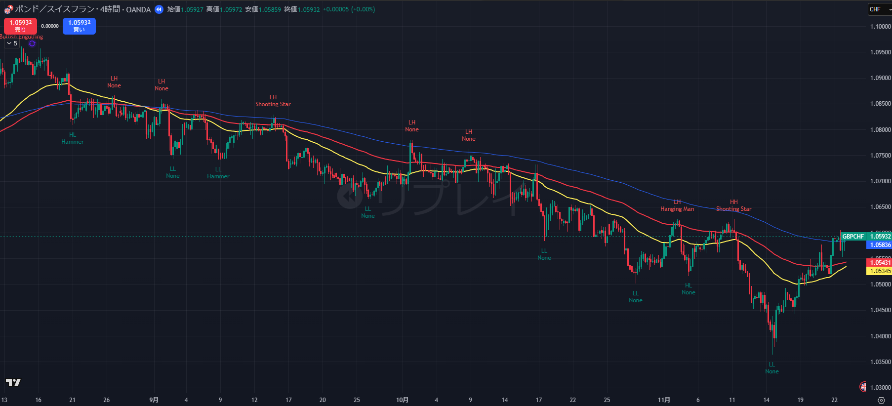 - 本日のGBP/CHFは、**4時間足の上昇トレンド(エリオット波動第5波)**を最大の根拠とし、押し目買い戦略に優位性があります。