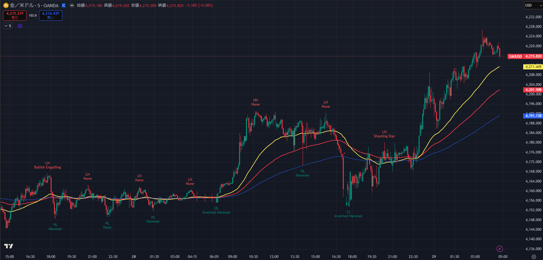 | ラスト押し安値 / 戻り高値 | 4127.60 / 4188.08 | 4204.54 / 4211.89 (直近のCHoCHライン) |