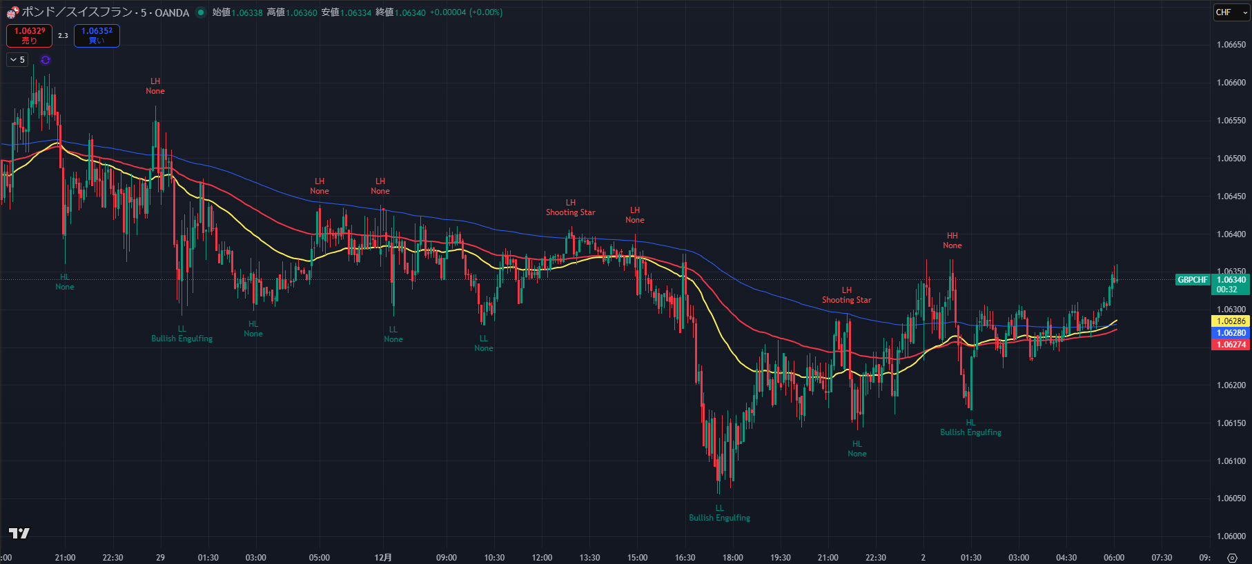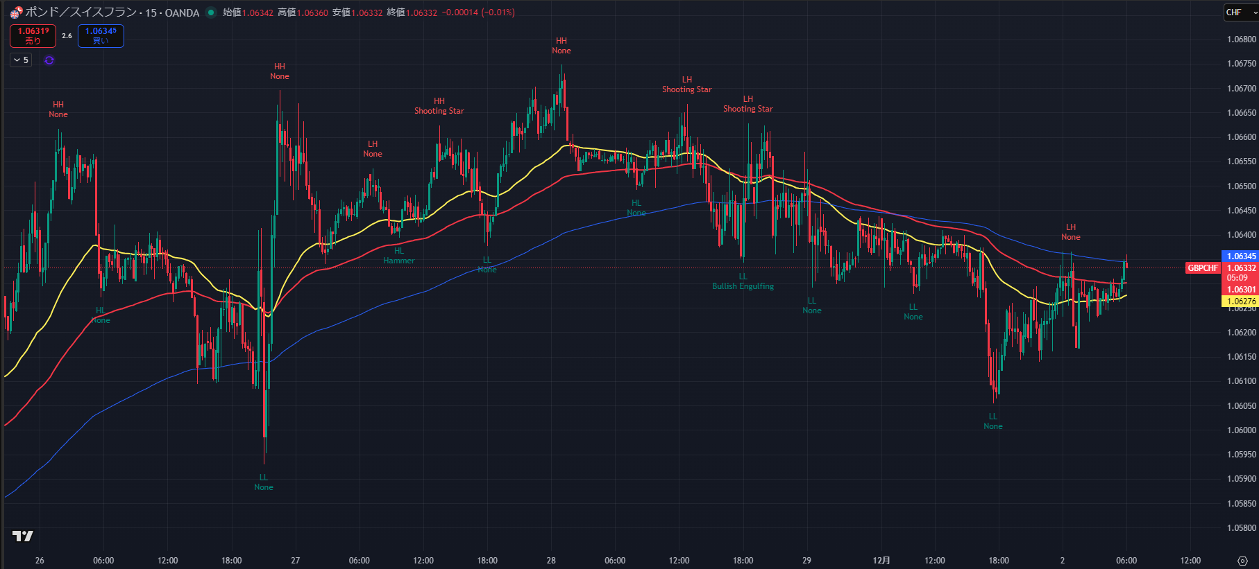 - 1H ラスト戻り高値: 1.06390 (12/1の最高値)。ここを上抜けない限り、短期トレンドは「下」です。