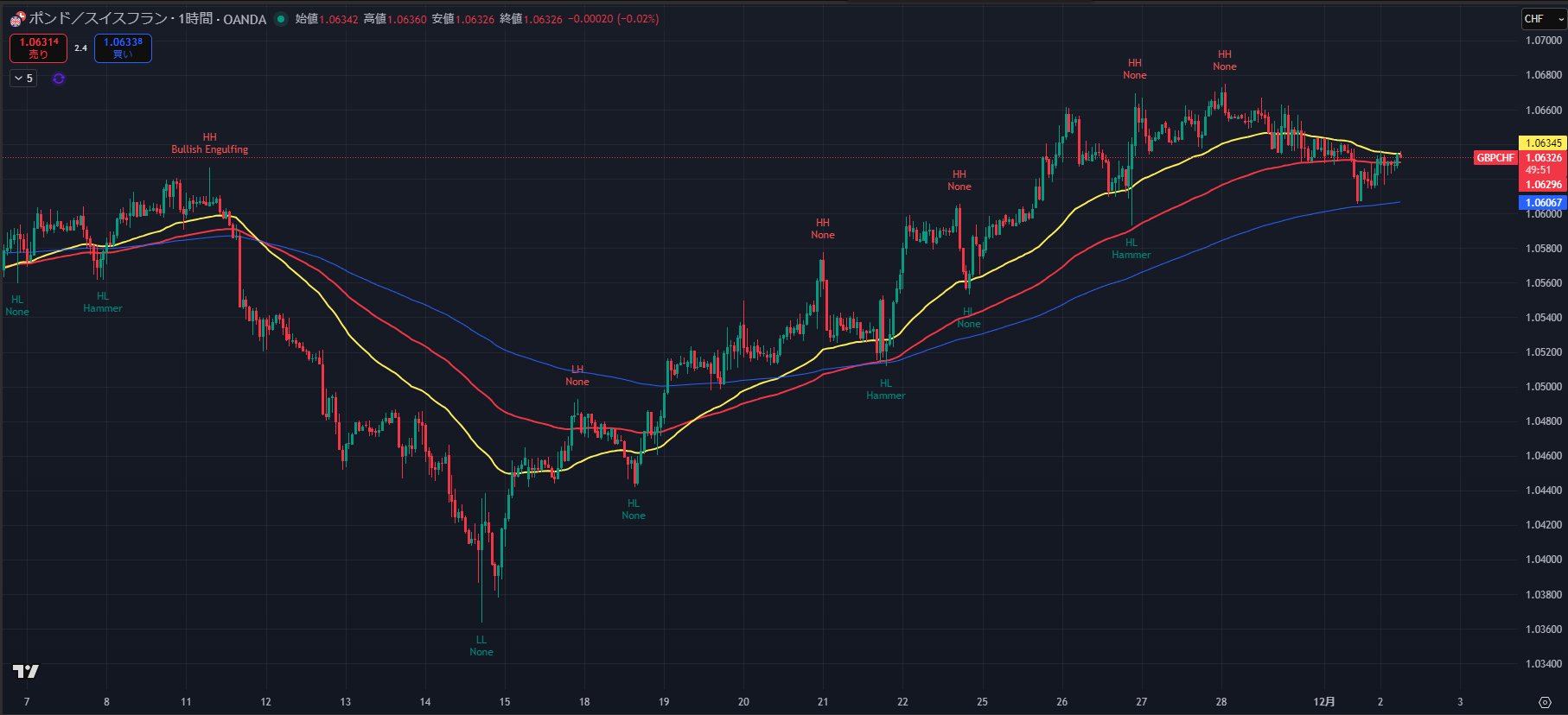 - 最安値: 1.0605付近(12/1 夕方)