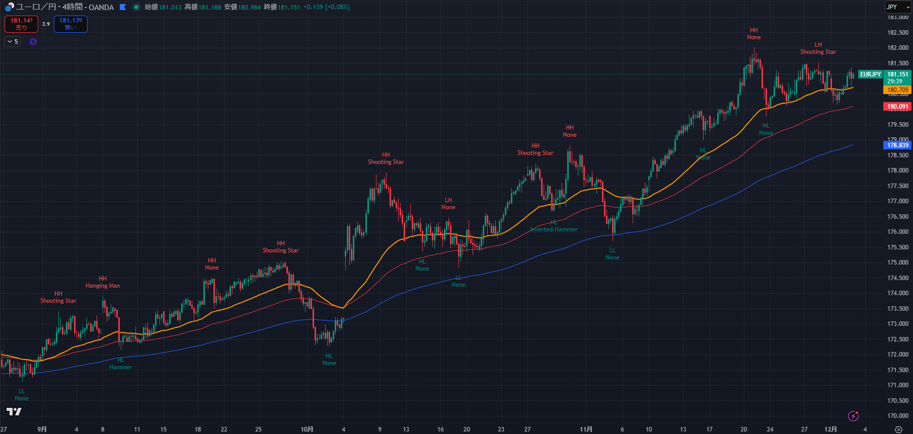 - 下落してもすぐに下ヒゲをつけて反発する動きが多発しており、181.00 近辺の買い意欲が非常に強い ことが確認できます。