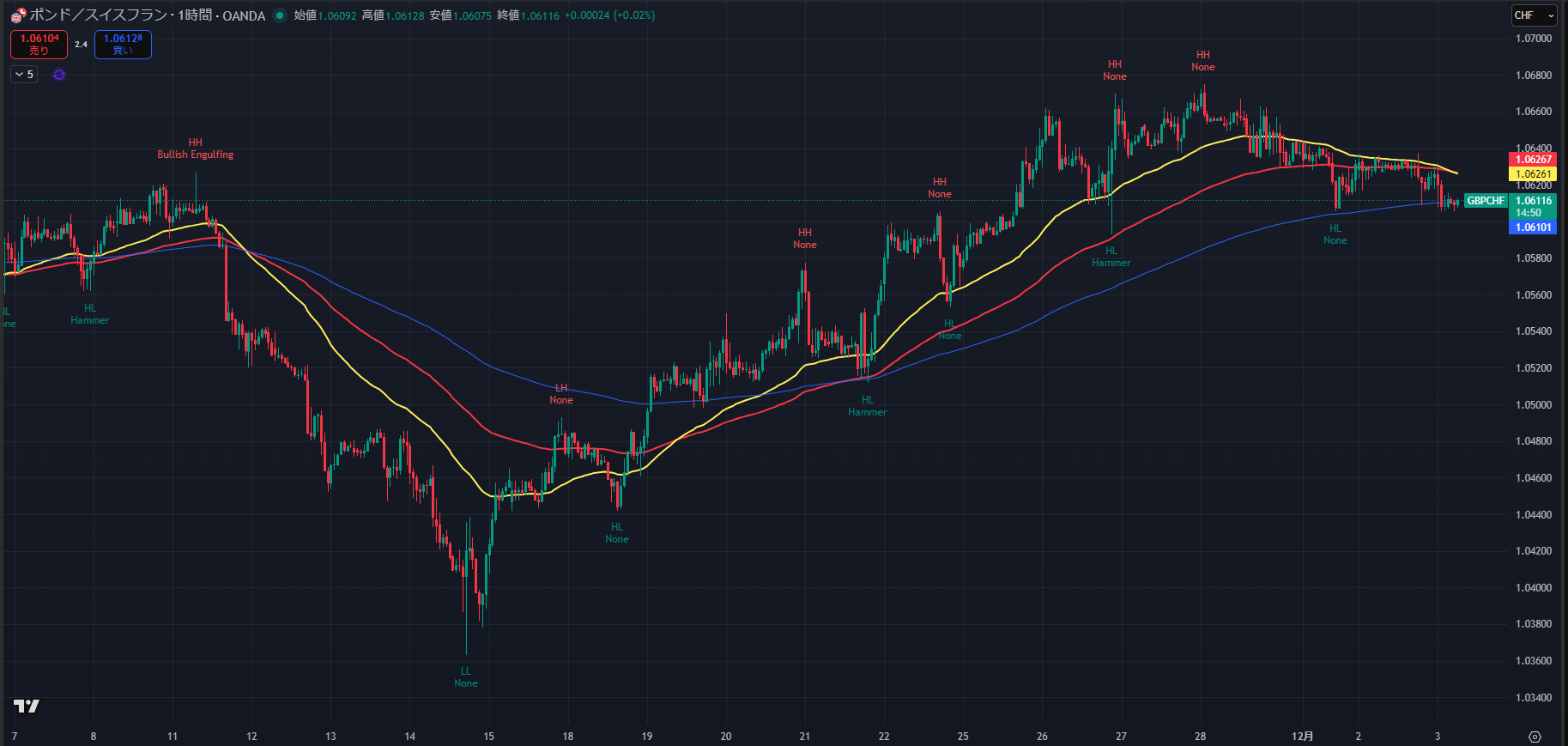 - スイスGDP: Q3 GDPは前期比マイナス成長(-0.5%)となりましたが、市場のリスクオフセンチメント(株安懸念)によるスイスフランの安全資産買いが経済指標の悪さを相殺し、GBPCHFにおいては「ポンド安・フラン高」の圧力が勝っています。