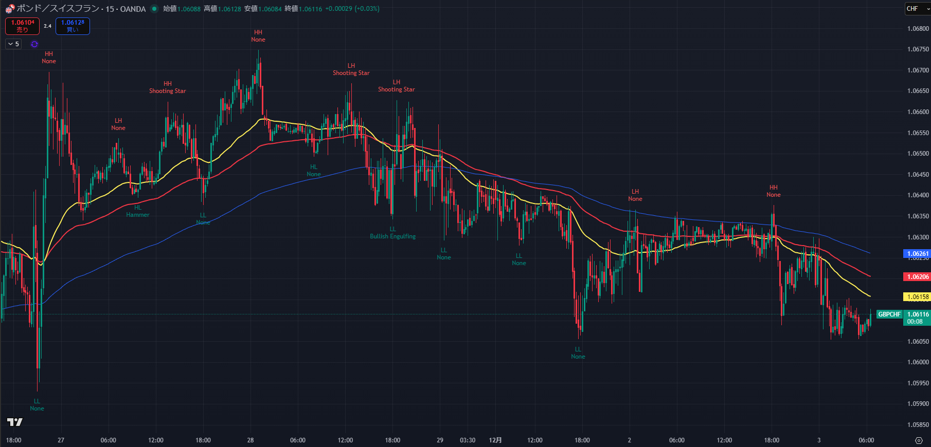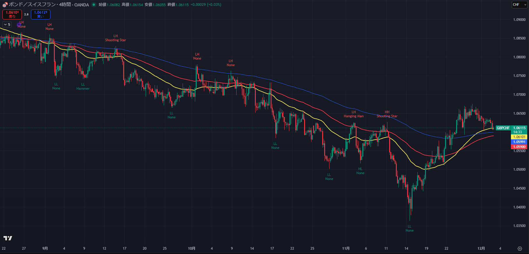 - 高値切り下げ (LH): 1.0666 → 1.0639 → 1.0634 (New!)