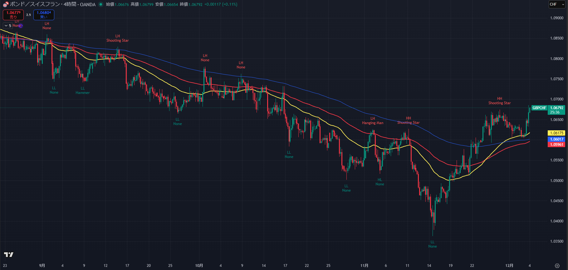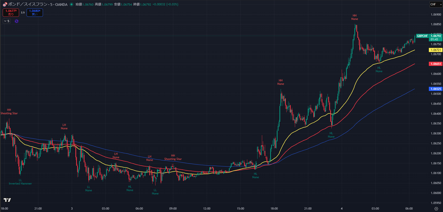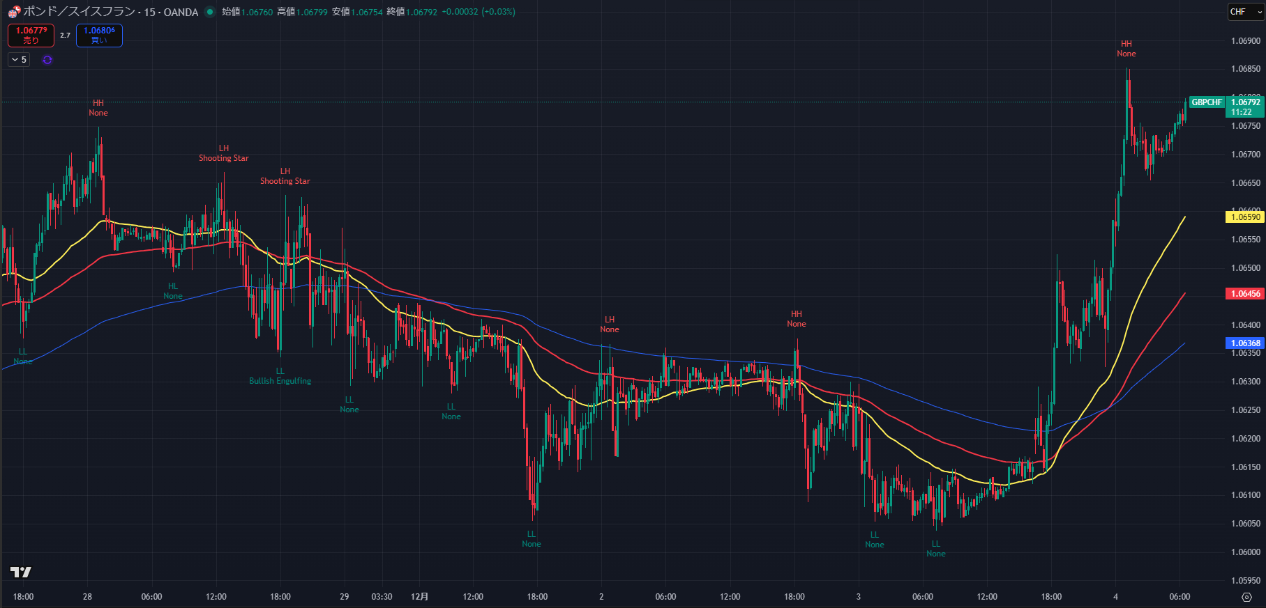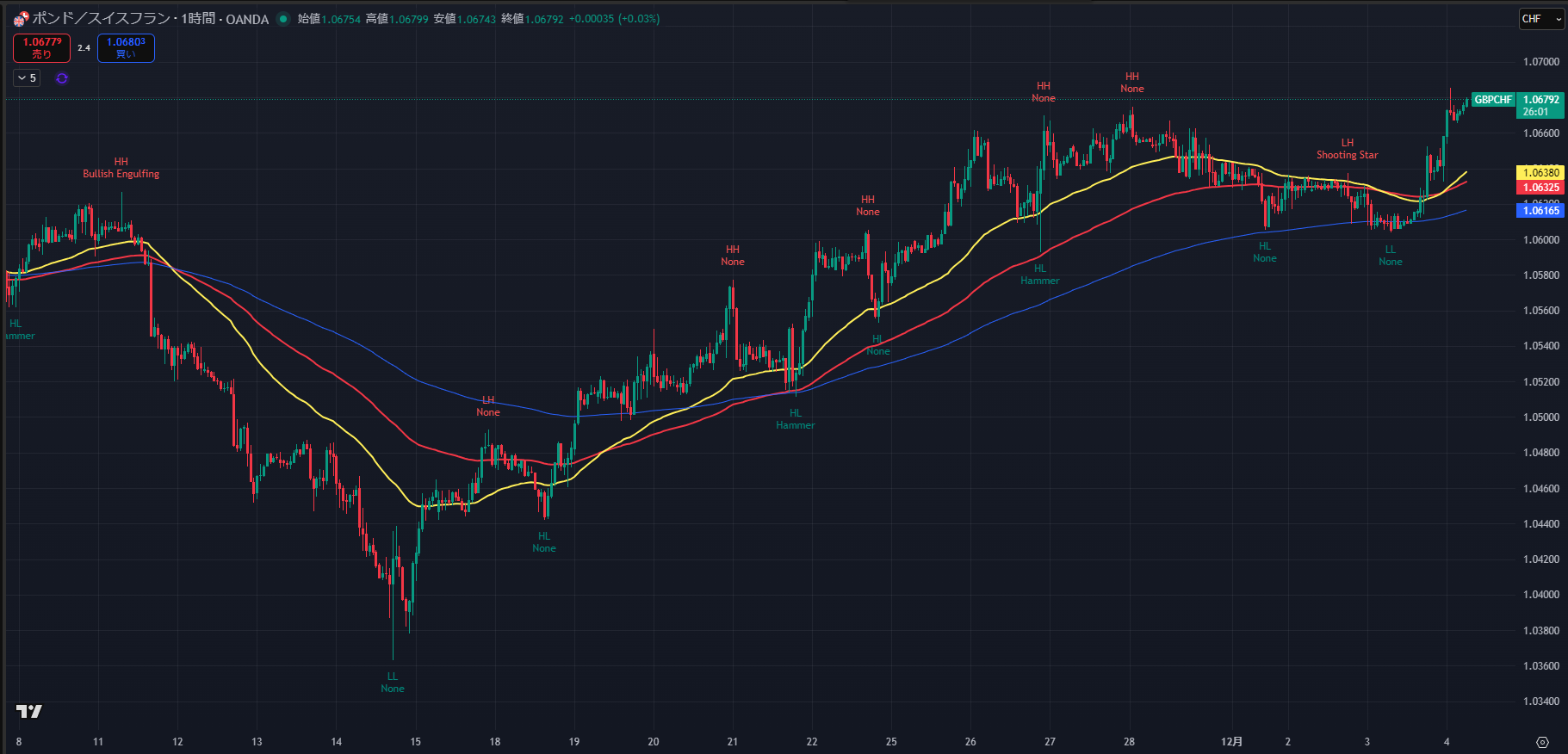 - 全体: 昨日の1.0634ブレイクにより、GBP/CHFは明確に**「上昇トレンド」**へ転換しました。ファンダメンタルズ(英・瑞金利差)もこの動きを支持しています。