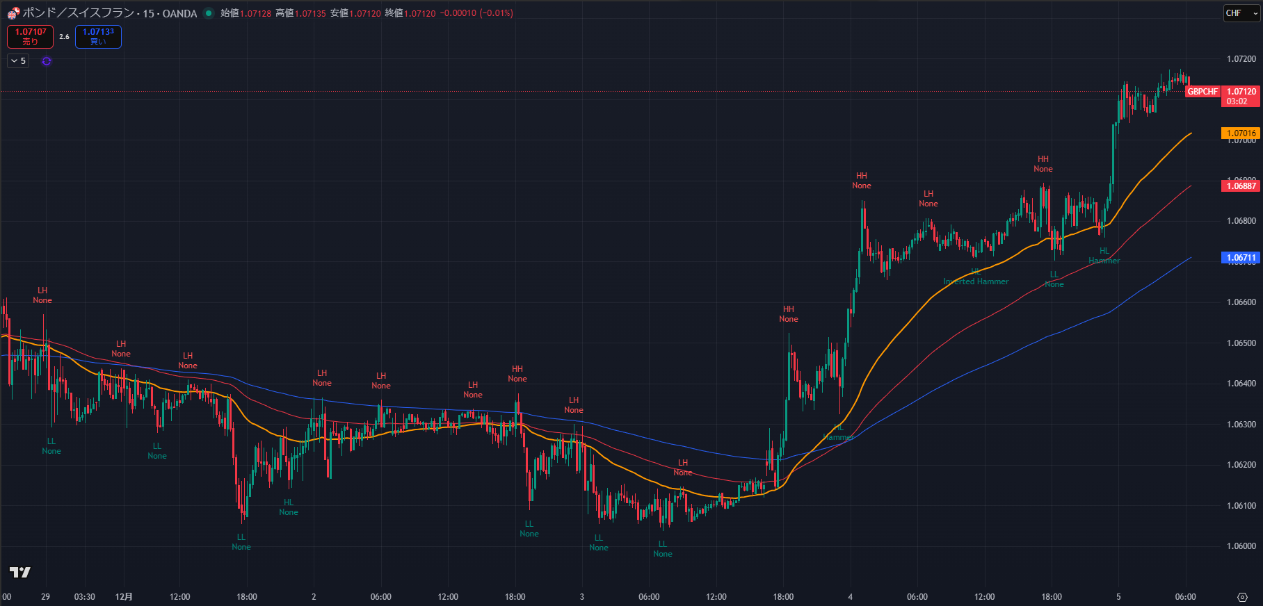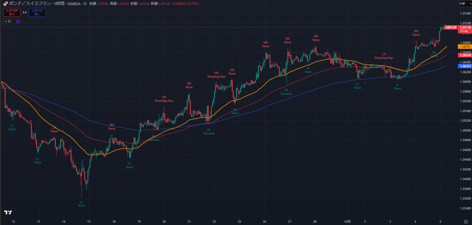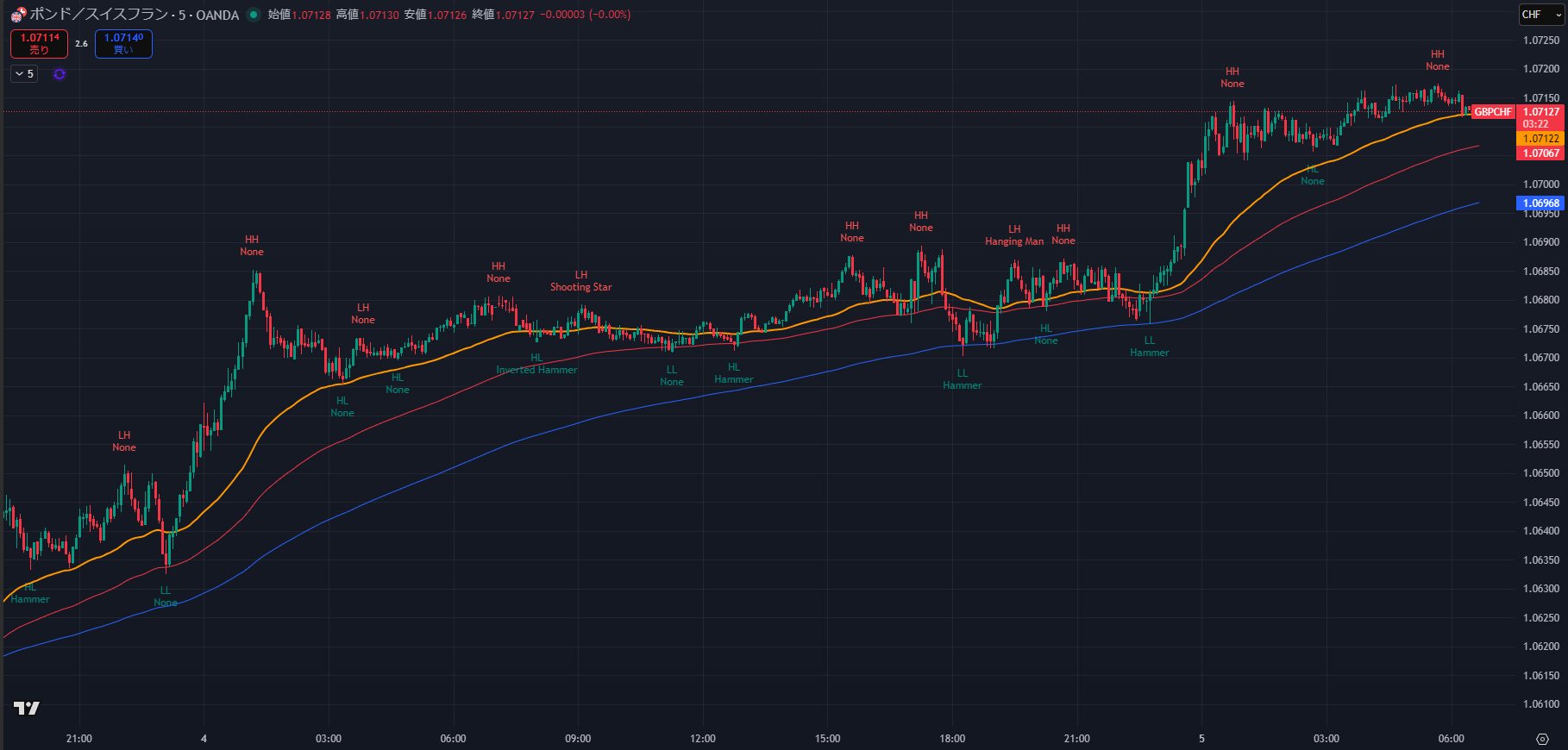 - 相場全体: GBP/CHFは非常に強い上昇トレンドにあります。昨日は押し目が浅く入る機会がありませんでしたが、これはトレンドの強さの証明です。