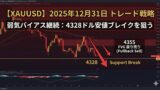 - テクニカル根拠: エリオット波動Wave 3の延長、またはWave 5のスタートを狙う順張り。直近安値更新によるロスカット巻き込みを想定。