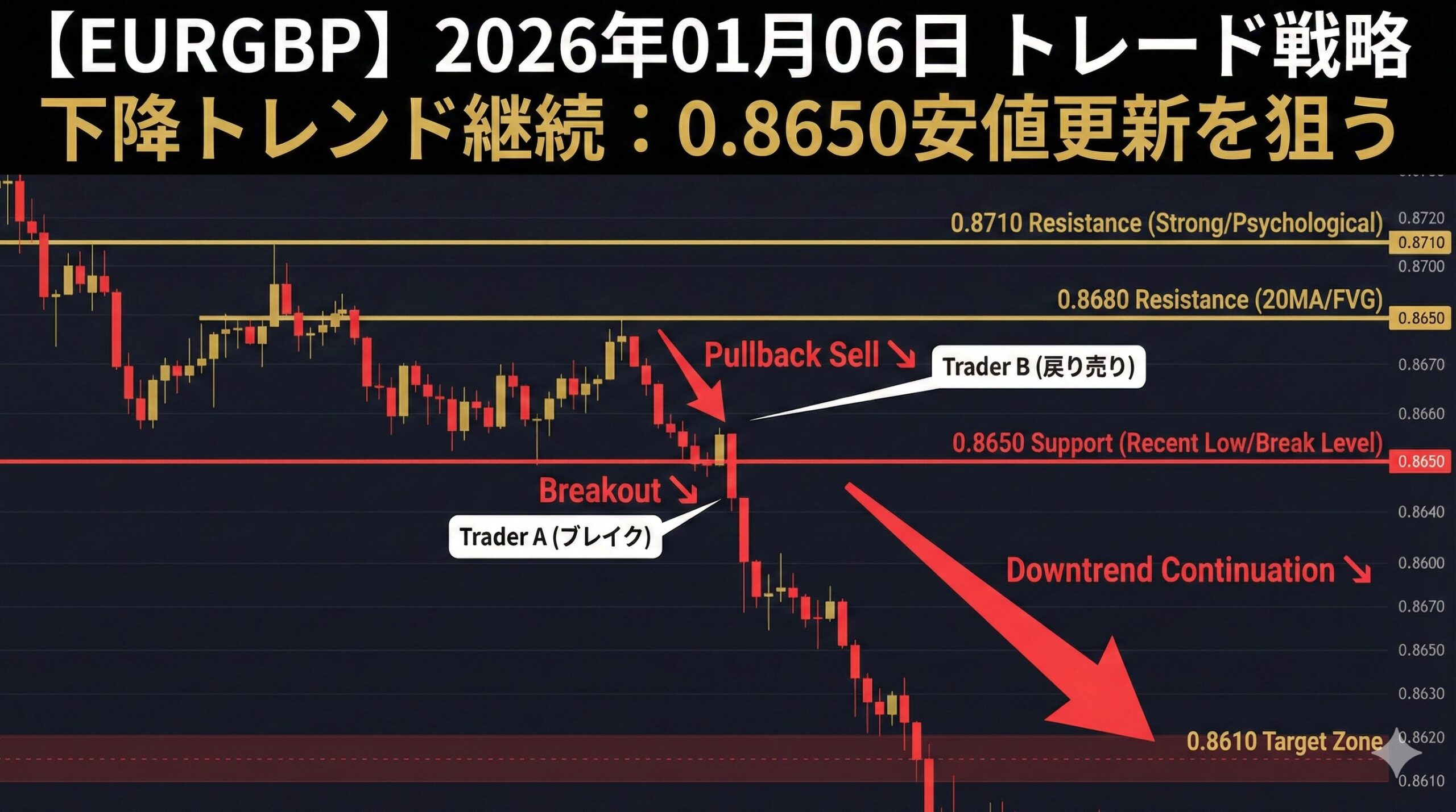 【EURGBP】2026年01月06日のトレード戦略 | 下降トレンド継続で0.8650安値更新を狙う