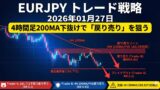 相場観の要約: 4時間足レベルでは依然として「買い優勢」です。金曜日の調整が 154.50 でサポートされた事実は、市場が 155.00ブレイク を虎視眈々と狙っている証拠です。1時間足ではやや横ばいのレンジ気味ですが、これを「エネルギー充填期間」と捉え、ブレイクまたは下限からの押し目買いを狙います。