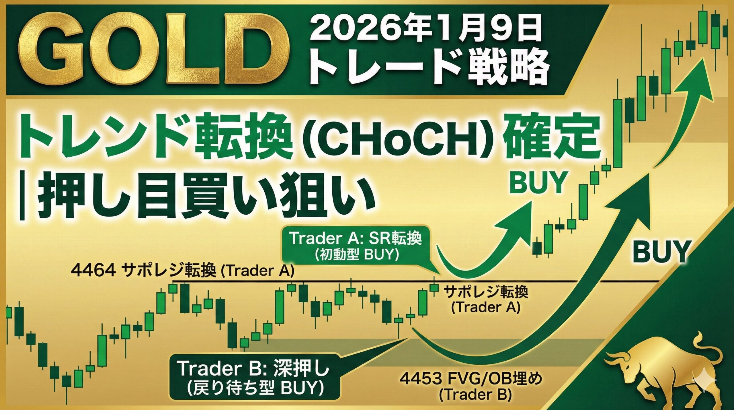 2026年1月9日(金)のGOLD(ゴールド/米ドル)について、裁量トレード×クオンツ分析の視点から戦略を立案しました。