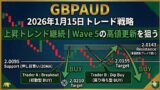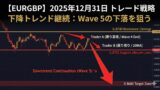 - Trader A(初動型): 直近高値ブレイクアウトによるWave 5の上昇狙い