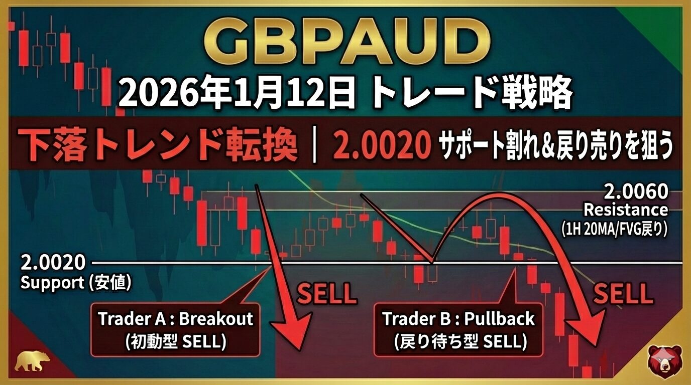 2026年1月12日(月)のGBPAUD(英ポンド/豪ドル)について、裁量トレード×クオンツ分析の視点から戦略を立案しました。